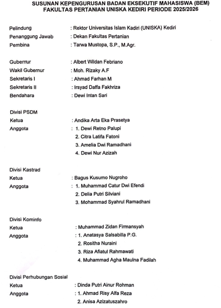 Pengurus BEM Fakultas Pertanian UNISKA Kediri ADART BEM Fakultas Pertanian LPJ FGD BEM Fakultas Pertanian